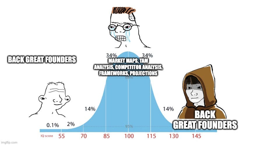 Don’t second guess yourself. If the founder says they will move mountains, they will move mountains. If the founder says they will make cars fly, they will make cars fly. If you fundamentally don’t believe that, then you lack conviction. I wanted to pull the trigger on a deal where I kept second guessing a bunch of ridiculous things the founder said he’d do - and guess what - he did most of them.